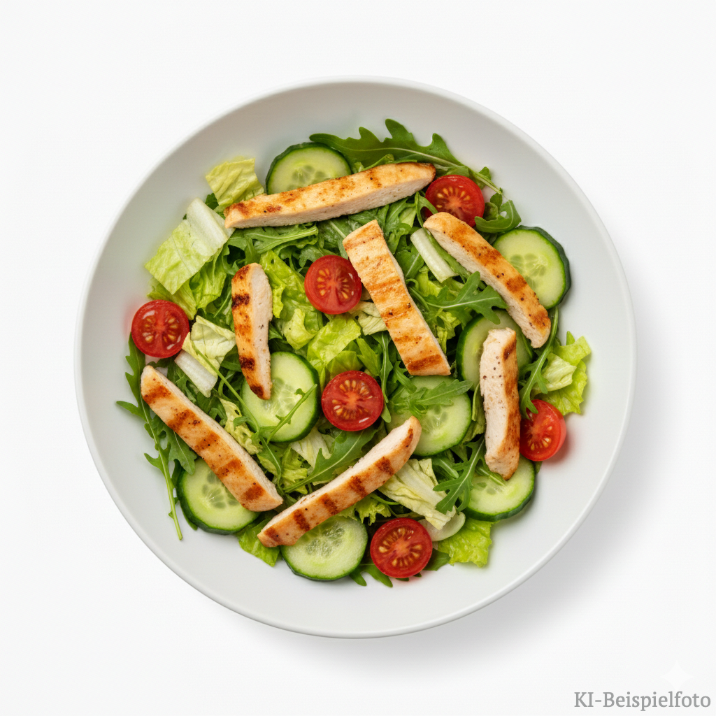 HÄHNCHENBRUSTSTREIFEN, Eisbergsalat, Rucola, Gurken